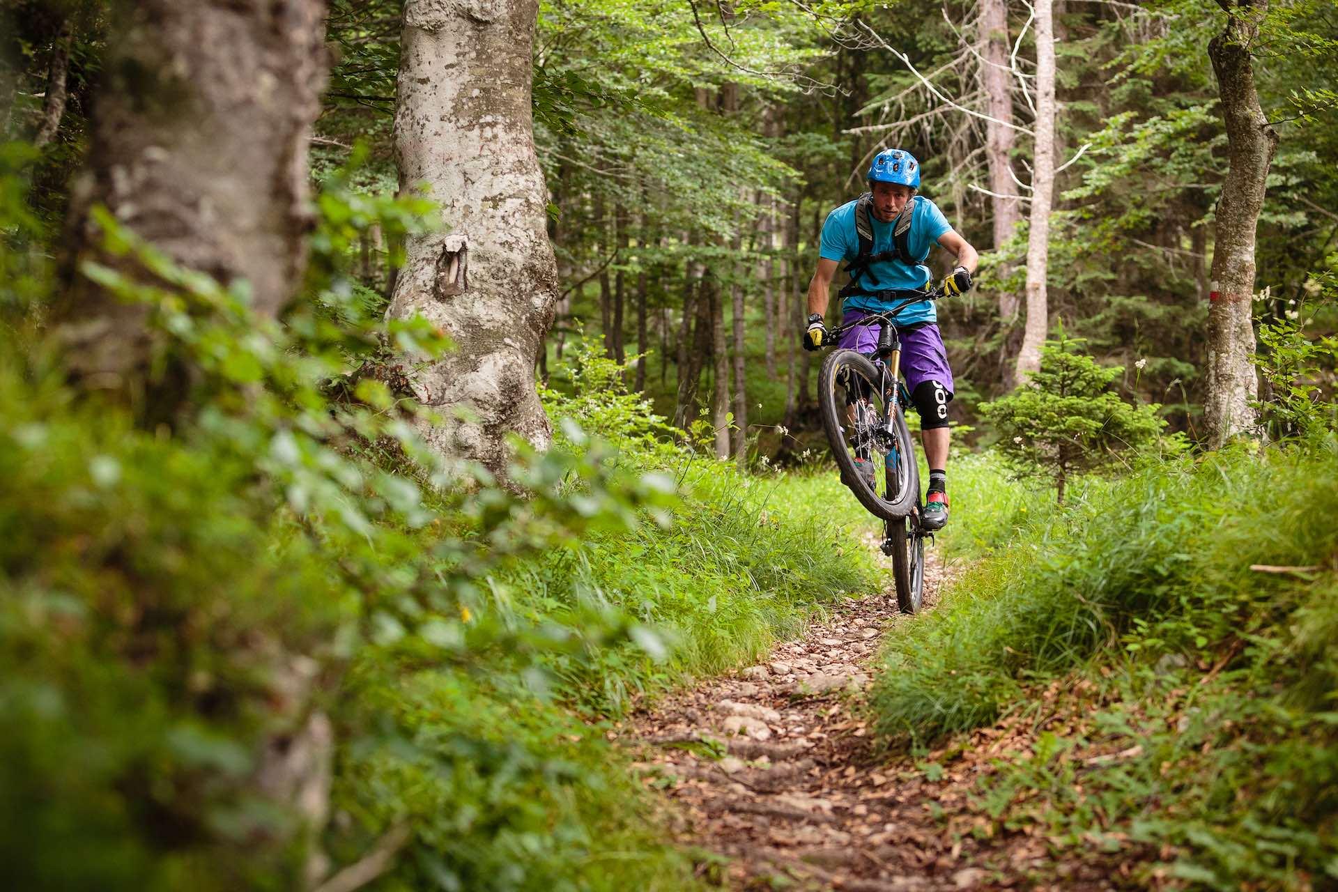 Enduro trail with various technical parts. From the Paganella, connecting with the trail MTB805, the route will take you directly to Molveno. You can reach the starting point through the lifts "gondola Paganella 2001" and "chairlift Cima Paganella" and 15 minutes of riding on the dirt road that connects "Cima Paganella" to "Paganella 2". The itinerary is suitable exclusively for expert and trained riders.